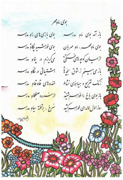باز نسیم نوروز تازیانۀ خود را بر شاخه های خمودۀ درختان می نوازد.